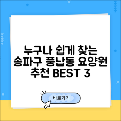 누구나 쉽게 찾는 송파구 풍납동 요양원 추천 BEST 3