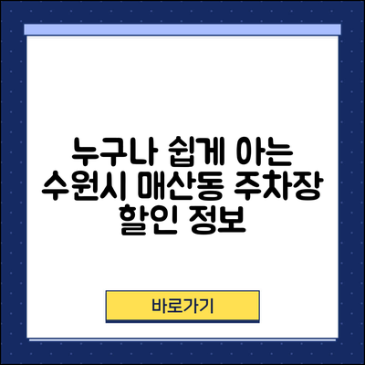 누구나 쉽게 아는 수원시 매산동 주차장 할인 정보