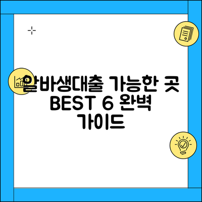 알바생대출 가능한 곳 BEST 6 완벽 가이드