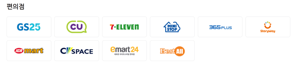 GS25/CU/7일레븐/미니스탑/365플러스/storyway/IGAmart/CSPACE/emart24/BestAll