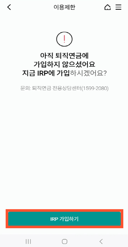 - IRP 가입하기를 선택 후 IRP계좌를 개설하세요.