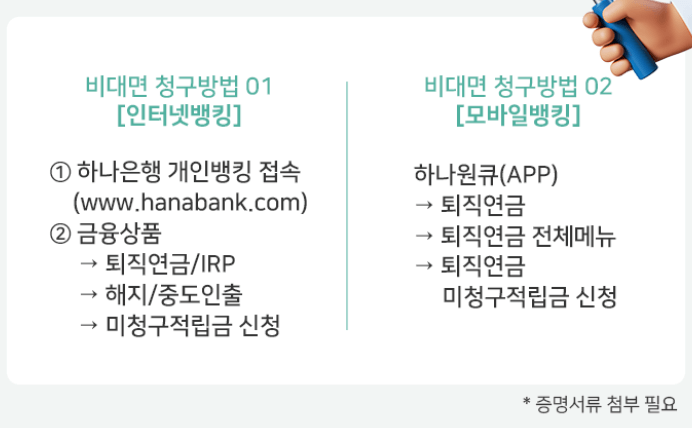 하나은행 퇴직연금 수령절차는 비대면으로 간편하게 진행할 수 있습니다.