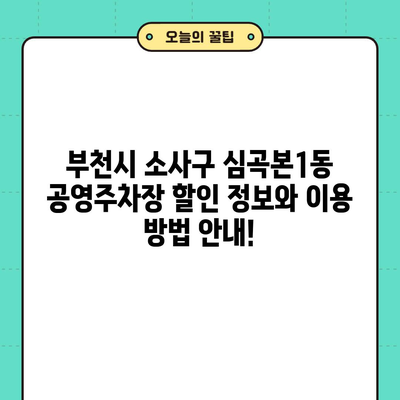 부천시 소사구 심곡본1동 공영주차장 할인 정보와 이용 방법 안내!