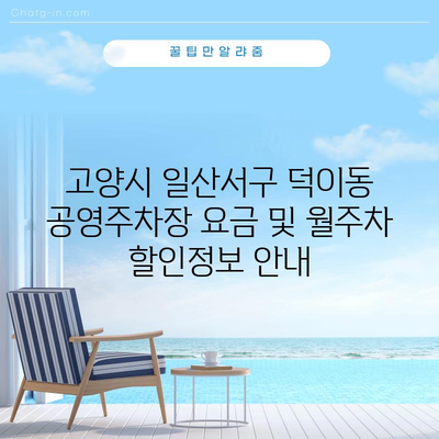 고양시 일산서구 덕이동 공영주차장 요금 및 월주차 할인정보 안내