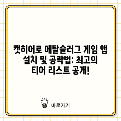 캣히어로 메탈슬러그 게임 앱 설치 및 공략법: 최고의 티어 리스트 공개!