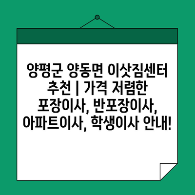 양평군 양동면 이삿짐센터 추천 | 가격 저렴한 포장이사, 반포장이사, 아파트이사, 학생이사 안내!
