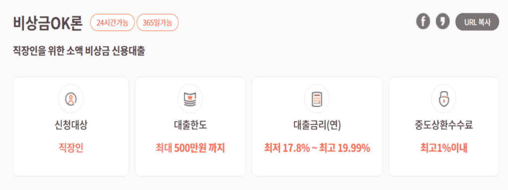 비상금OK론 대출을 간략하게 정리하면 아래와 같습니다.
