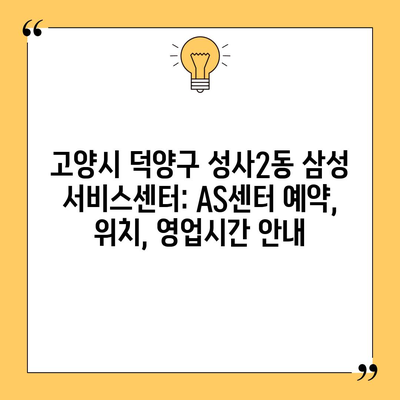 고양시 덕양구 성사2동 삼성 서비스센터: AS센터 예약, 위치, 영업시간 안내