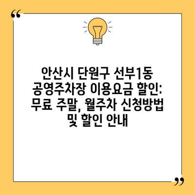 안산시 단원구 선부1동 공영주차장 이용요금 할인: 무료 주말, 월주차 신청방법 및 할인 안내