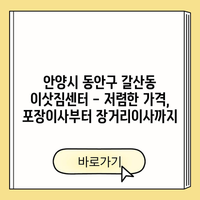 안양시 동안구 갈산동 이삿짐센터 – 저렴한 가격, 포장이사부터 장거리이사까지
