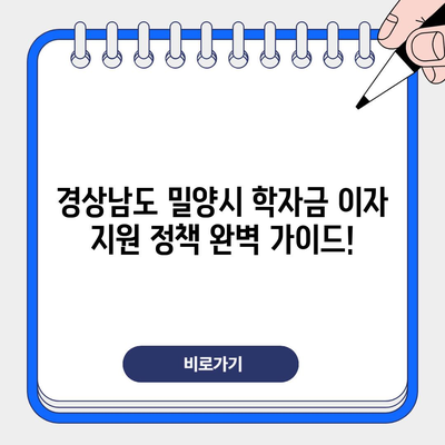 경상남도 밀양시 학자금 이자 지원 정책 완벽 가이드!