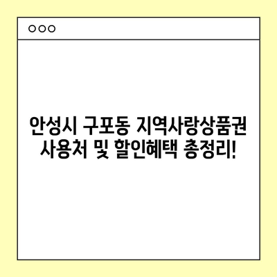 안성시 구포동 지역사랑상품권 사용처 및 할인혜택 총정리!
