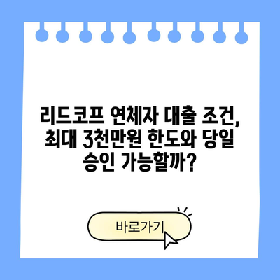 리드코프 연체자 대출 조건, 최대 3천만원 한도와 당일 승인 가능할까?
