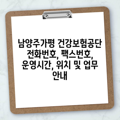 남양주가평 건강보험공단 전화번호, 팩스번호, 운영시간, 위치 및 업무 안내