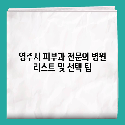 영주시 피부과 전문의 병원 리스트 및 선택 팁