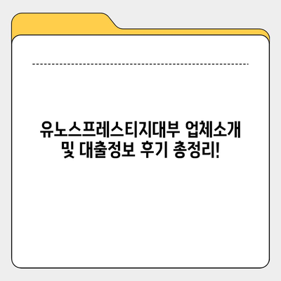 유노스프레스티지대부 업체소개 및 대출정보 후기 총정리!