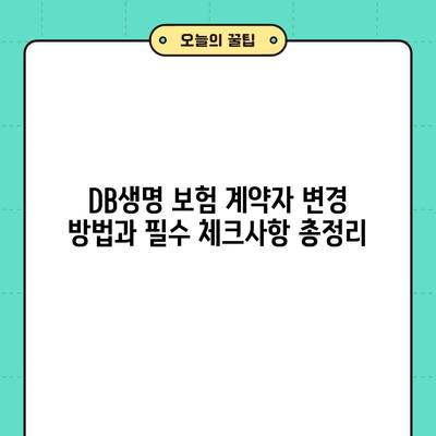 DB생명 보험 계약자 변경 방법과 필수 체크사항 총정리
