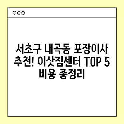 서초구 내곡동 포장이사 추천! 이삿짐센터 TOP 5 비용 총정리