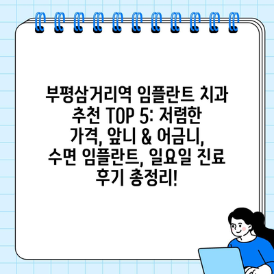 부평삼거리역 임플란트 치과 추천 TOP 5: 저렴한 가격, 앞니 & 어금니, 수면 임플란트, 일요일 진료 후기 총정리!