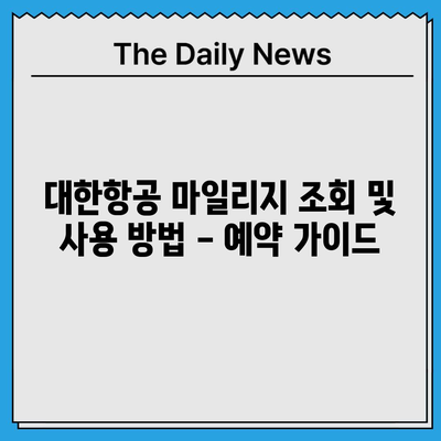 대한항공 마일리지 조회 및 사용 방법 – 예약 가이드