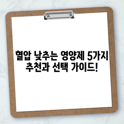 혈압 낮추는 영양제 5가지 추천과 선택 가이드!