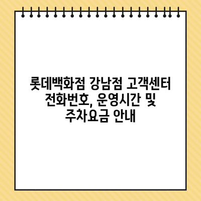 롯데백화점 강남점 고객센터 전화번호, 운영시간 및 주차요금 안내
