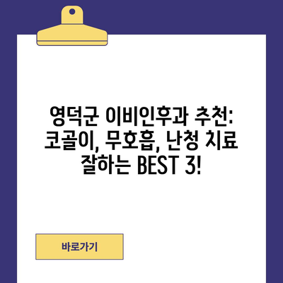영덕군 이비인후과 추천: 코골이, 무호흡, 난청 치료 잘하는 BEST 3!
