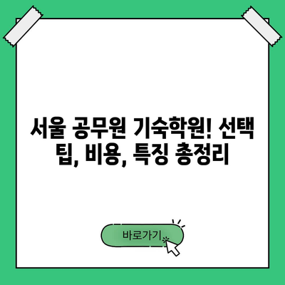서울 공무원 기숙학원! 선택 팁, 비용, 특징 총정리