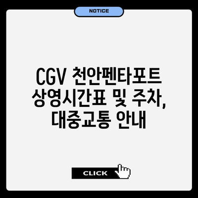 CGV 천안펜타포트 상영시간표 및 주차, 대중교통 안내