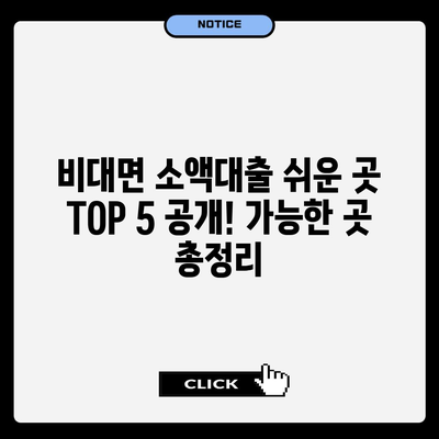비대면 소액대출 쉬운 곳 TOP 5 공개! 가능한 곳 총정리