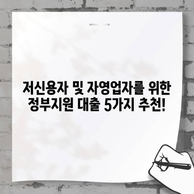 저신용자 및 자영업자를 위한 정부지원 대출 5가지 추천!