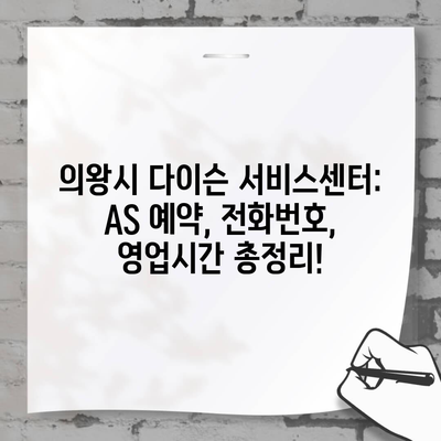 의왕시 다이슨 서비스센터: AS 예약, 전화번호, 영업시간 총정리!
