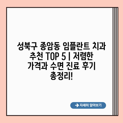 성북구 종암동 임플란트 치과 추천 TOP 5 | 저렴한 가격과 수면 진료 후기 총정리!