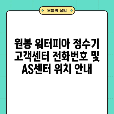원봉 워터피아 정수기 고객센터 전화번호 및 AS센터 위치 안내