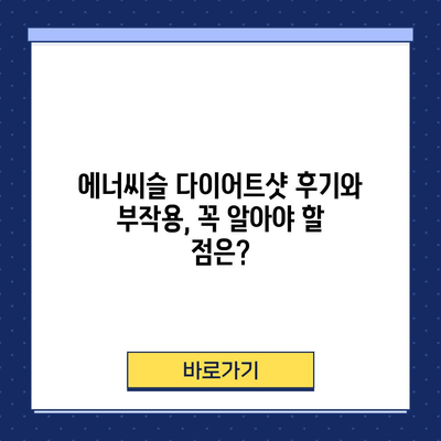 에너씨슬 다이어트샷 후기와 부작용, 꼭 알아야 할 점은?