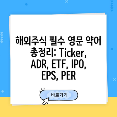 해외주식 필수 영문 약어 총정리: Ticker, ADR, ETF, IPO, EPS, PER