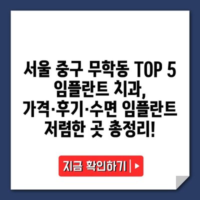 서울 중구 무학동 TOP 5 임플란트 치과, 가격·후기·수면 임플란트 저렴한 곳 총정리!