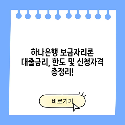하나은행 보금자리론 대출금리, 한도 및 신청자격 총정리!