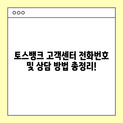토스뱅크 고객센터 전화번호 및 상담 방법 총정리!