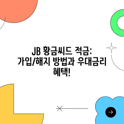 JB 황금씨드 적금: 가입/해지 방법과 우대금리 혜택!