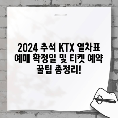 2024 추석 KTX 열차표 예매 확정일 및 티켓 예약 꿀팁 총정리!