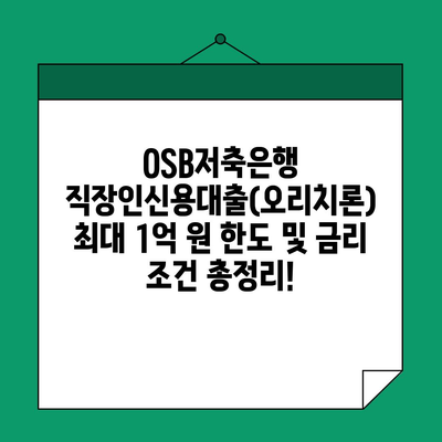 OSB저축은행 직장인신용대출(오리치론) 최대 1억 원 한도 및 금리 조건 총정리!