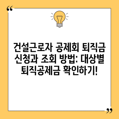 건설근로자 공제회 퇴직금 신청과 조회 방법: 대상별 퇴직공제금 확인하기!