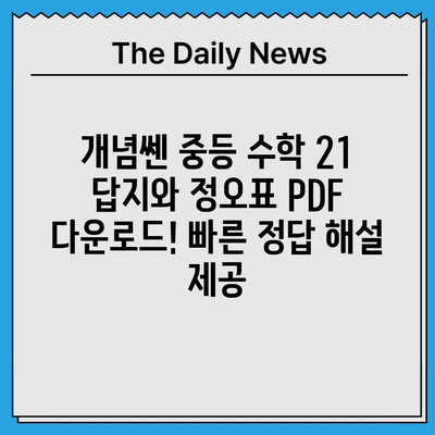 개념쎈 중등 수학 21 답지와 정오표 PDF 다운로드! 빠른 정답 해설 제공