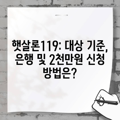 햇살론119: 대상 기준, 은행 및 2천만원 신청 방법은?