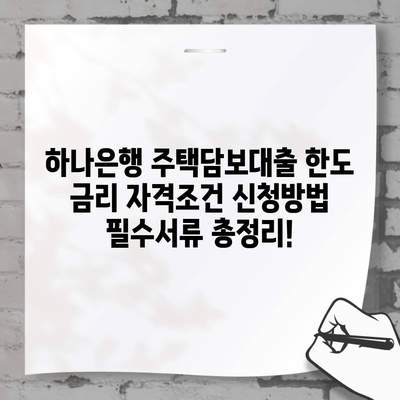 하나은행 주택담보대출 한도 금리 자격조건 신청방법 필수서류 총정리!
