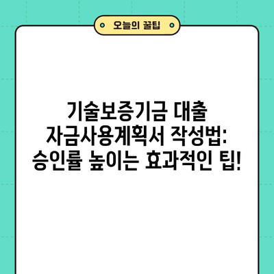 기술보증기금 대출 자금사용계획서 작성법: 승인률 높이는 효과적인 팁!