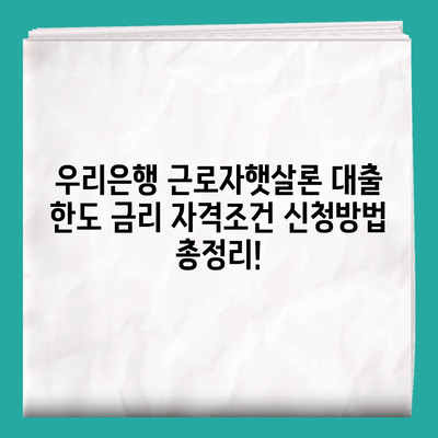 우리은행 근로자햇살론 대출 한도 금리 자격조건 신청방법 총정리!