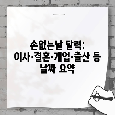 손없는날 달력: 이사·결혼·개업·출산 등 날짜 요약