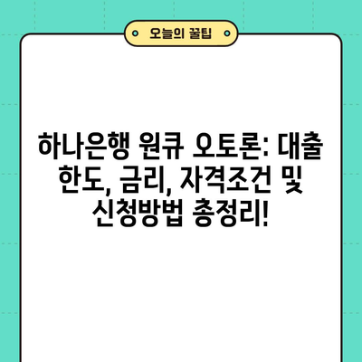 하나은행 원큐 오토론: 대출 한도, 금리, 자격조건 및 신청방법 총정리!